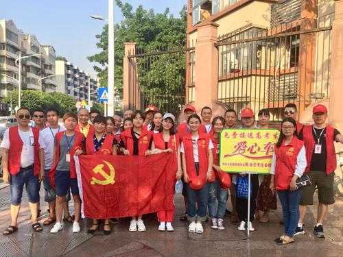 2018年6月7日,管理学院党总支组织学生党员和院学生会青年志愿者服务队携手铜梁区团委、铜梁区残联协会组建爱心送考车队,在铜梁各个高考考点开展爱心送考活动,此次活动持续两天,旨在为高考学子加油打气,提供良好的考试环境。