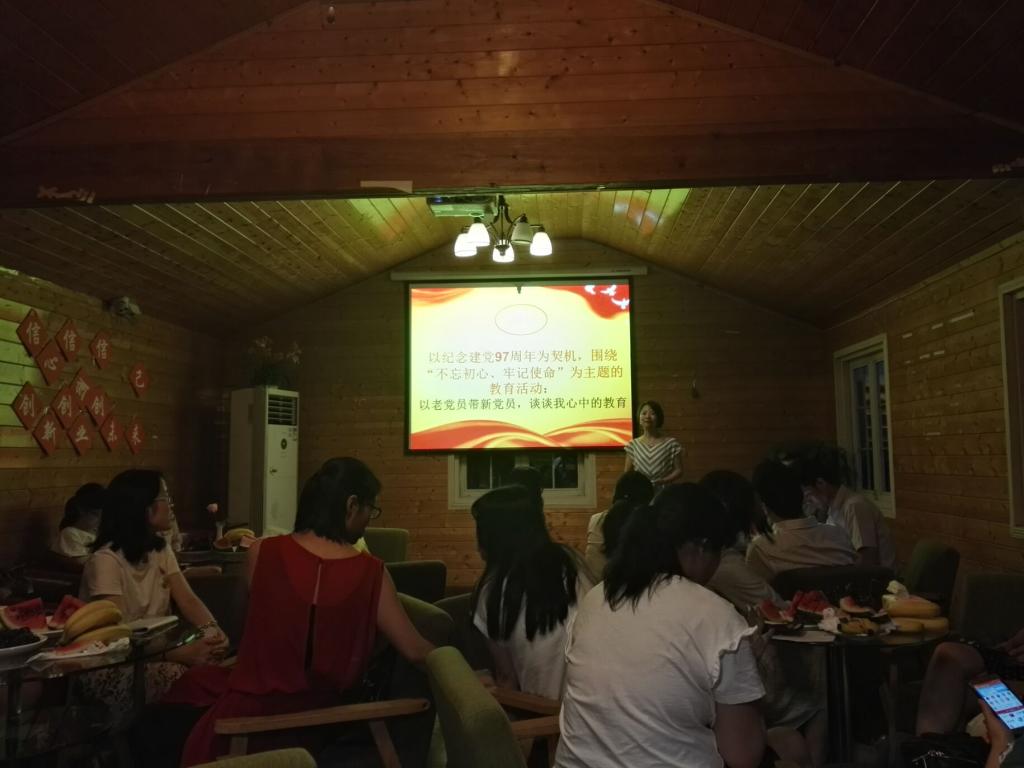 在本次活动中,教工党支部集体学习了“习近平总书记在北京大学师生座谈会讲话”精神,在此基础上,以纪念建党97周年为契机,围绕“不忘初心、牢记使命”的主题,进行了3组老党员带新党员谈谈我心中的教育不同形式的分享,效果显著。最后,支部书记对支部半期工作做了总结。