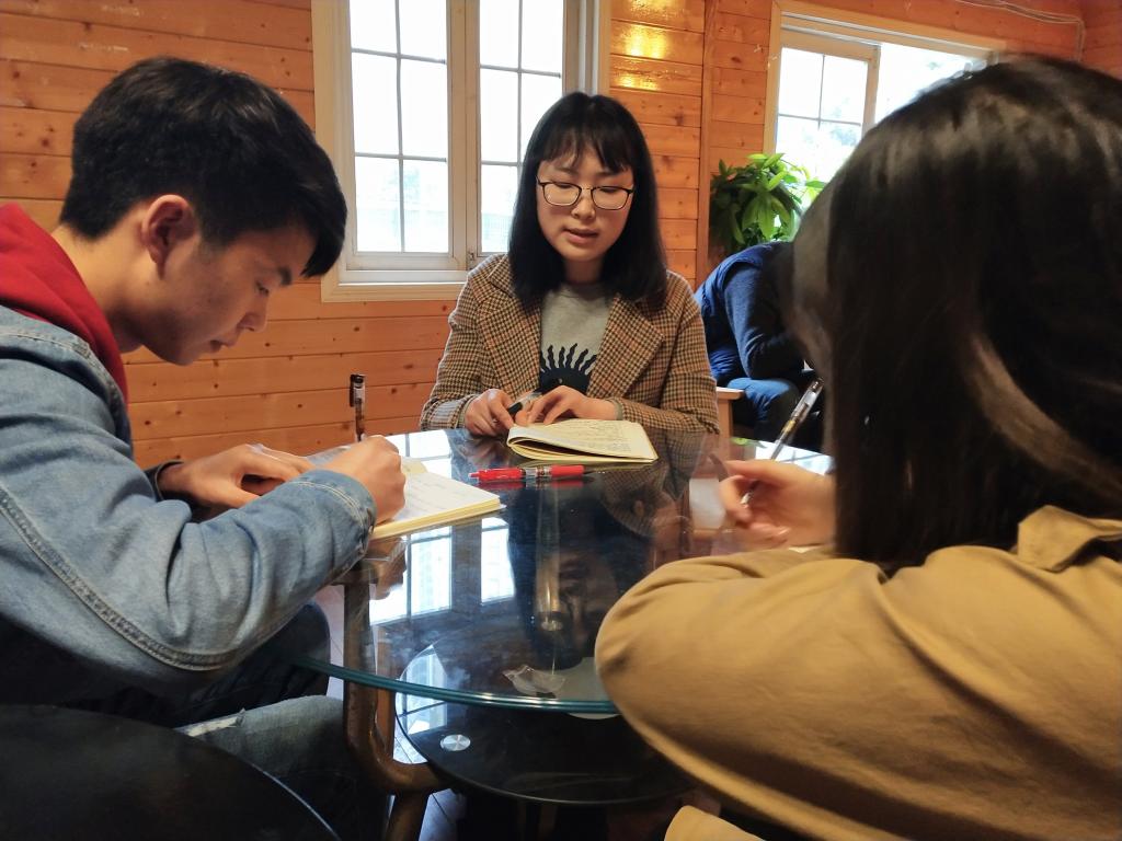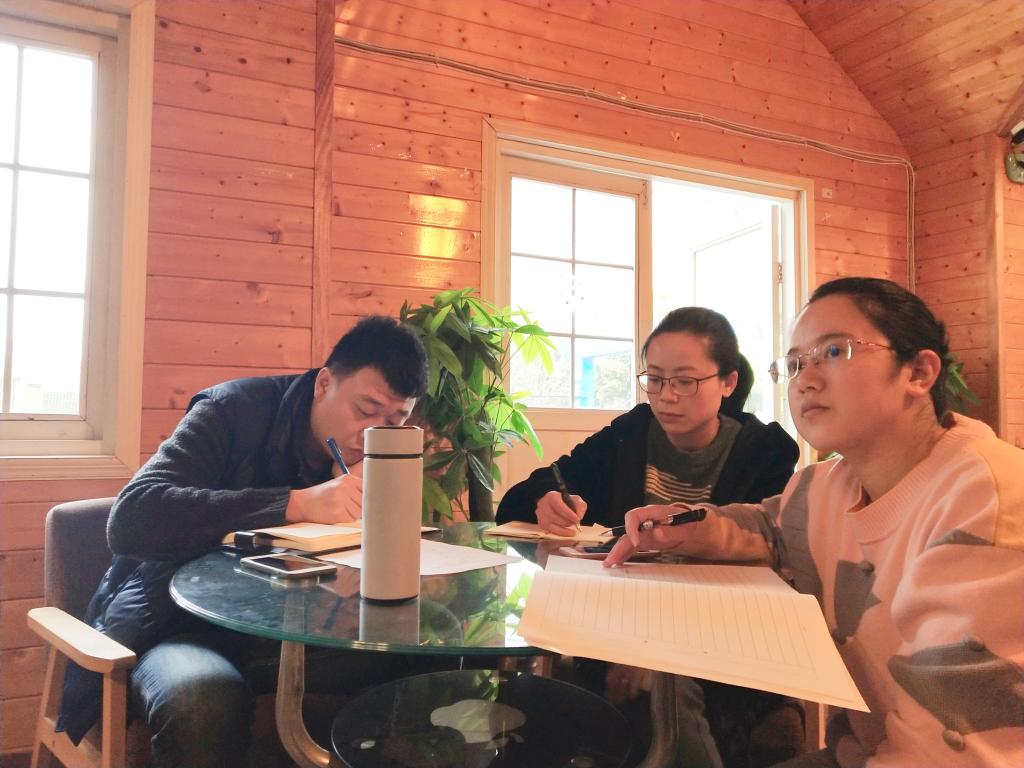 大数据与智能工程学院学生党支部书记何庆龄(右)、组织委员孙超(左)、宣传委员王红妹(中)在会上听学生上党课