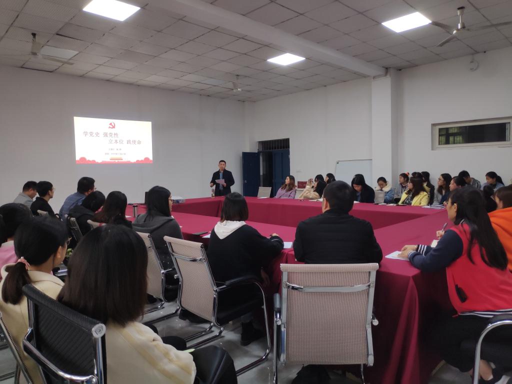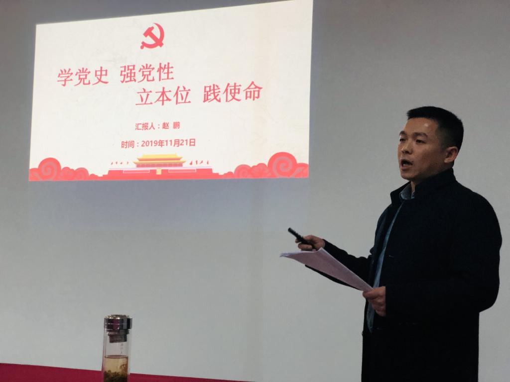 为进一步深入开展“不忘初心、牢记使命”主题教育,贯彻落实“三会一课”制度,强化广大党员的身份意识。2019年11月21日下午,数学与计算机学院党总支书记赵鹏在3103A会议室以“学党史 强党性 立本位 践使命”为主题为全体党员上了一堂精彩的党课。
