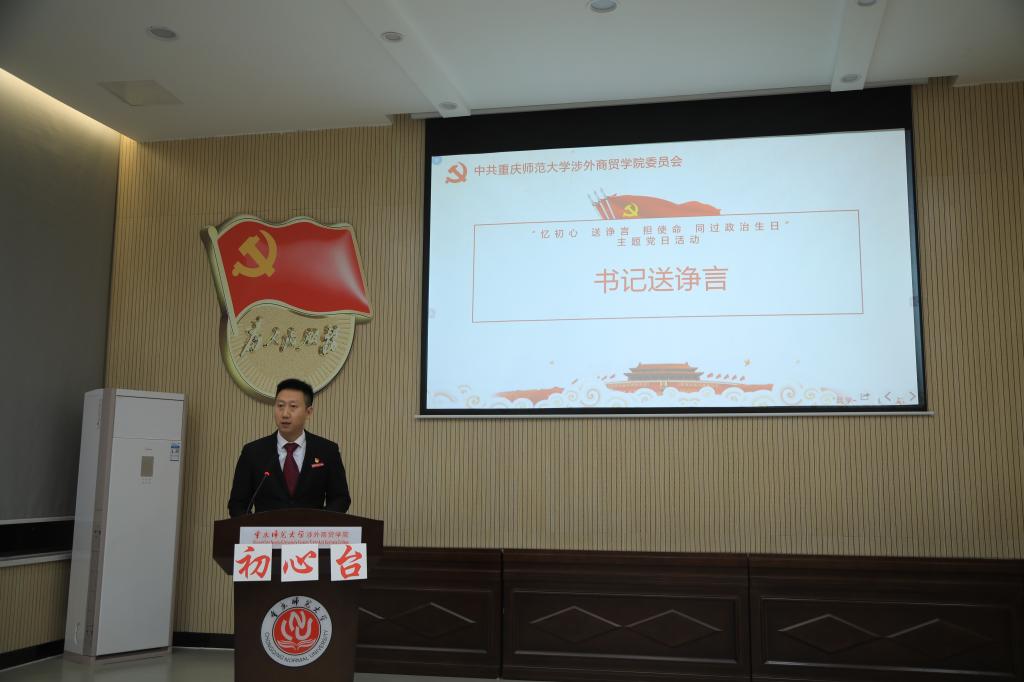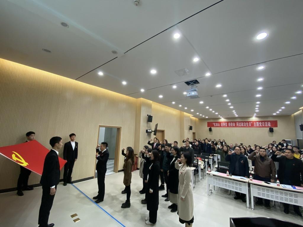 本次活动在《国际歌》的歌声中拉开帷幕,现场气氛庄重且充满仪式感,主持人在温馨的背景音乐声中依次介绍了十名同志的入党历程,各支部书记为过政治生日的党员同志送上了精心准备的政治生日贺卡和“初心”书籍,愿他们以红色书籍照亮初心,珍惜政治生命。同时,管理学院党总支书记周万春同志为过政治生日的同志们送上了良言诤语,在言语中大家感受到了来自党员同志间的温暖与厚谊,在祝福的同时也分别给教师党员、学生党员以及入党积极分子提出殷切希冀,希望他们立足岗位讲奉献,拼搏奉献做表率,展现党员本色。不仅如此,党员们还一起观看了入党誓词演变讲解视频,周万春同志带领党员同志举起右拳,重温入党誓词,用铿锵有力的声音再次表达对党的无限忠诚。紧接着,过政治生日的党员代表分别登上“初心台”,分享入党初心,讲述党龄故事,回忆入党志愿誓言,以自身的不断改变和丰富诠释了党对自己的重要性,同时也勾起台下各位党员同志们的心路历程回顾,不忘本源、不忘本性、不忘初心,这便是“初心台”背后的意义。管理学院院长李安平同志听完各位分享的入党初心故事,发自内心地用自身入党三十六年的党龄谈感悟,激励大家要争做时代奋斗者、接班人,充分发挥作为一名党员应有的先锋模范作用。
