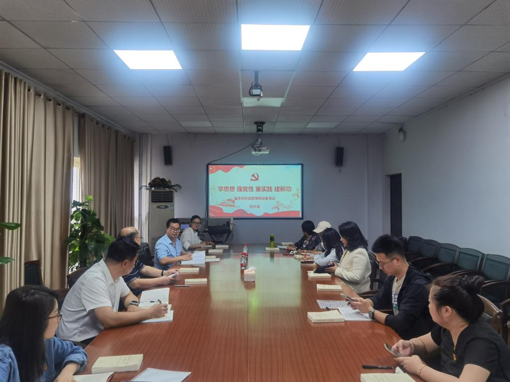 会上,何大海以“学思想、强党性、重实践、建新功”为主题,结合学校实际情况进行深入的分析和讲解。