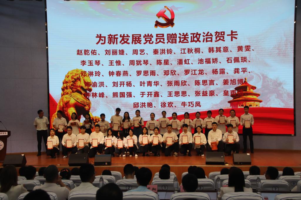 活动伊始,全体党员在雄壮有力的《国际歌》中正式拉开序幕。党总支宣传委员、团总支书记冉启周为新发展党员赠送政治贺卡。新发展党员代表牛巧凤发言,她表示希望和各位同学在今后的学习生活中,能够互相监督,共同发展,争取早日成为一名正式党员!