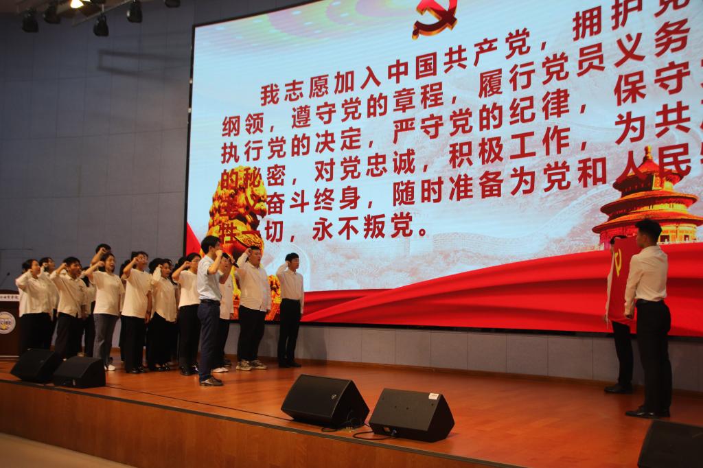 随后,党总支书记尹翔带领新发展党员入党宣誓、转正党员重温入党誓词。全体新发展党员以及转正党员在庄严的党旗下,郑重地举起右拳,用发自内心最忠诚、最热烈的感情宣誓。紧接着,党总支纪检委员、副院长马秀芬为毕业生党员赠送政治生日礼物,党总支统战委员、院长陈东升为主题教育知识竞赛获奖支部颁奖,以此标榜先进、树立典型。